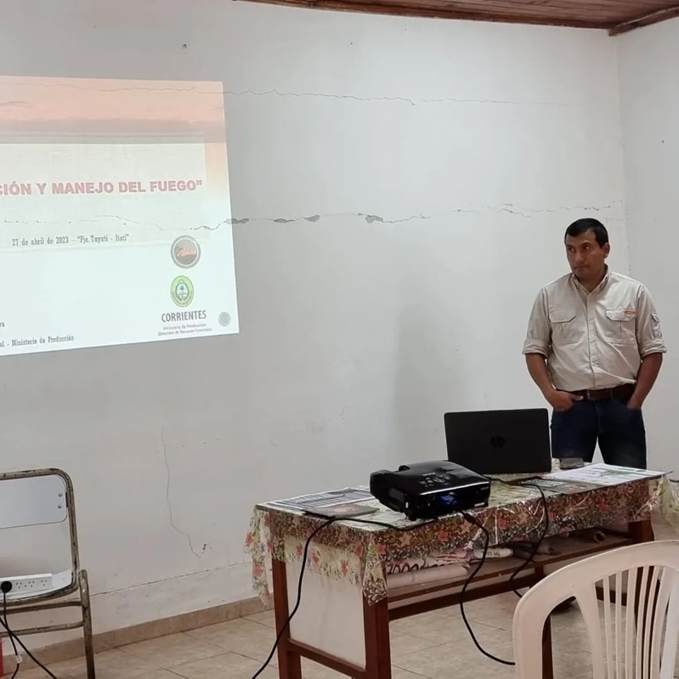 En este contexto se desarrollaron una serie de charlas y capacitaciones sobre incendios rurales y cambio climático destinadas a los productores de la Cuenca Hídrica del Subsistema Arroyo Baí y zonas de influencia.