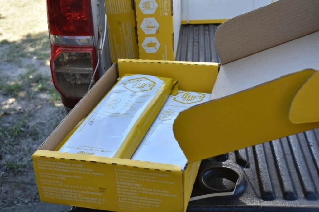 El Gobierno de Corrientes a través de la Secretaria de Agricultura y Ganadería dependiente del Ministerio de Producción mediante el departamento de apicultura realizó la entrega de acaricida Aluen CAP un producto orgánico para la cura de varroa a productores de Monte Caseros, Mocoretá y Mercedes. En esta oportunidad se entregó a 59 productores con un total de 9800 colmenas.