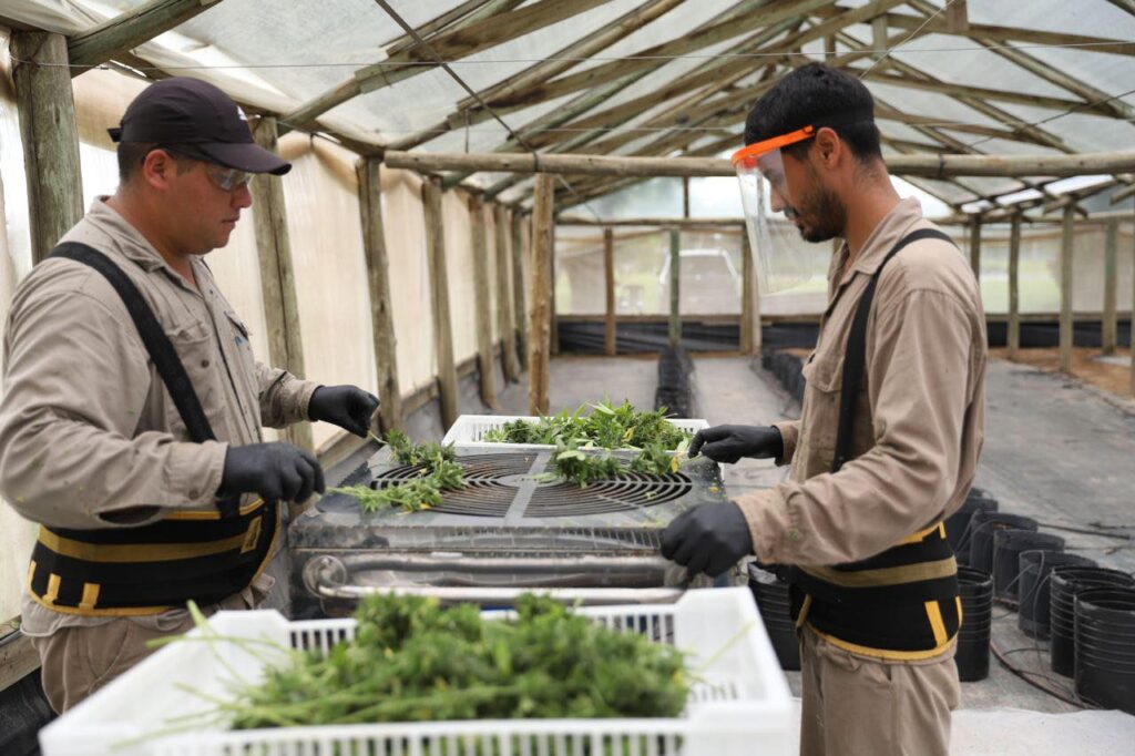 En un gran paso en materia de investigación de Caa Cannabis, se realizó la primera cosecha experimental en los invernaderos de madera.